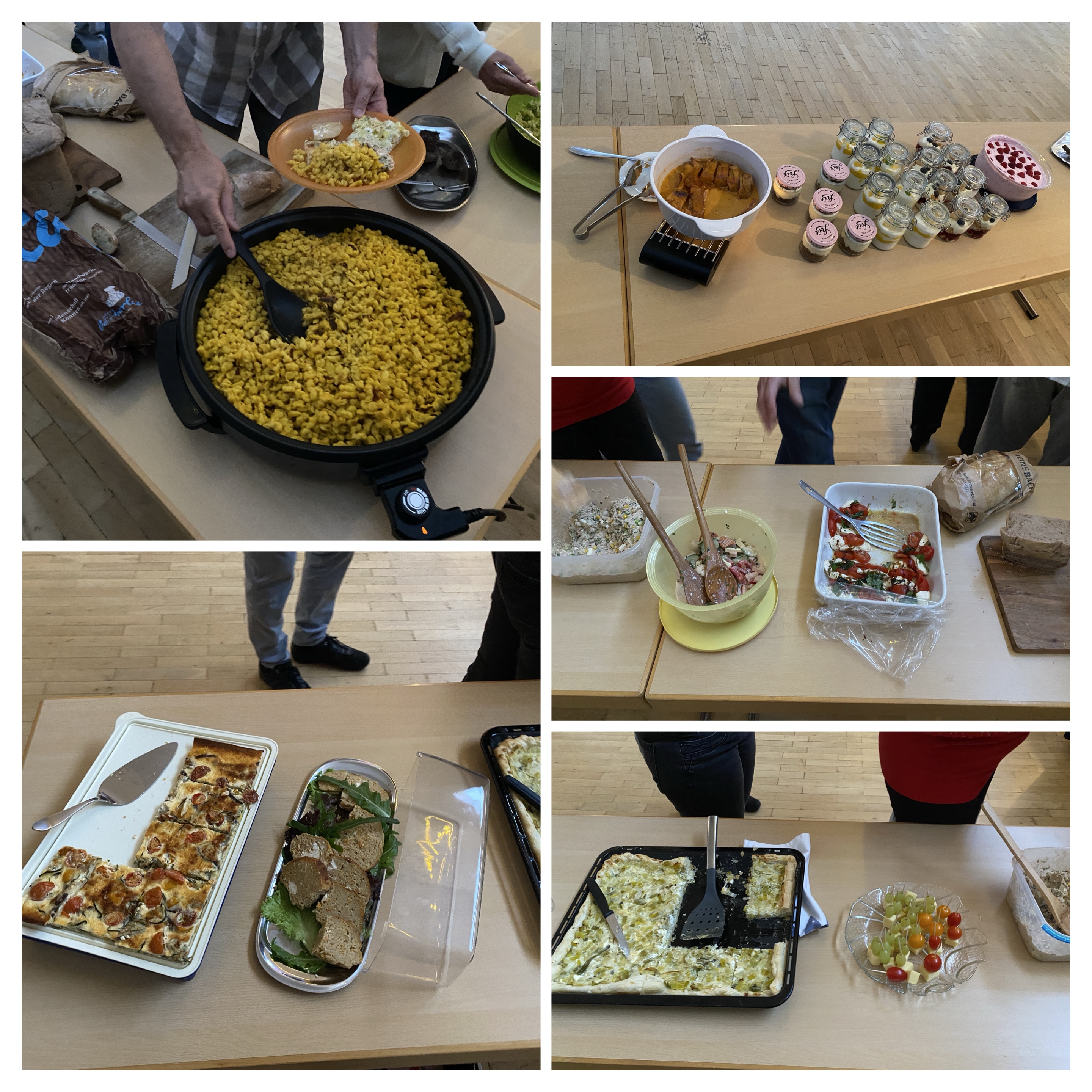 | Kochkäse (HH) | Selbstgebackenes Brot (Andreas) | Frikadellen (RK) | Dessert (KM) |