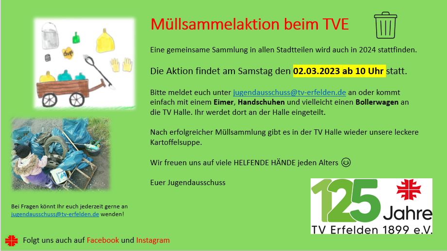 Der Turnverein Erfelden hat am Samstag, den 02.03. mit ca 75 fleißigen Händen klein und Groß Müll und Unrat gesammelt. Unterstützt wurden wir von der Gruppe Rhine Clean Up und Personen der Ahmadiyya Gemeinde.