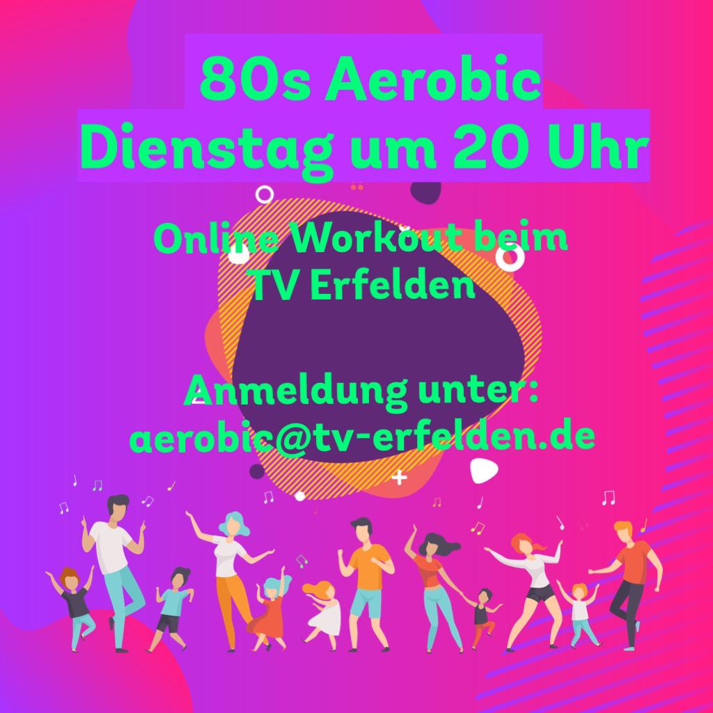 Aerobic entstand in den 80er Jahren in Amerika und lockte dank der anregenden und motivierenden Musik sowie den leicht erlernbaren Bewegungen selbst die größten Sportmuffel ins Fitnessstudio. Der TV Erfelden bietet derzeit genau dieses Aerobic wie in den 80er Jahren als Online-Training an.