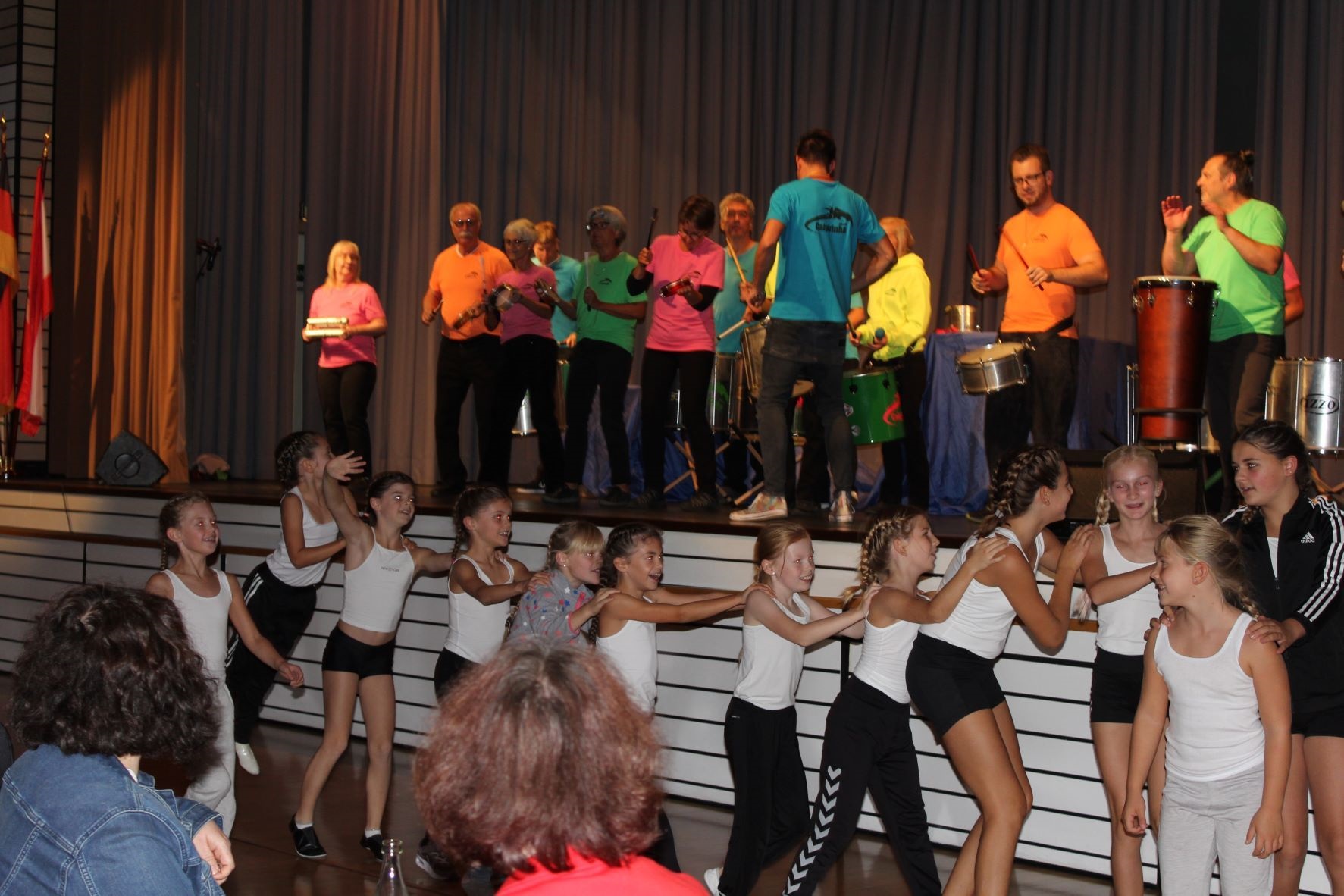 Auf der Bühne durfte eine Generalprobe absolviert werden, was den Mädchen sicherlich ein bisschen Nervosität nahm. Nichtsdestotrotz waren sie alle sehr aufgeregt und konnten es kaum erwarten ihr Können vor dem Publikum zu zeigen.